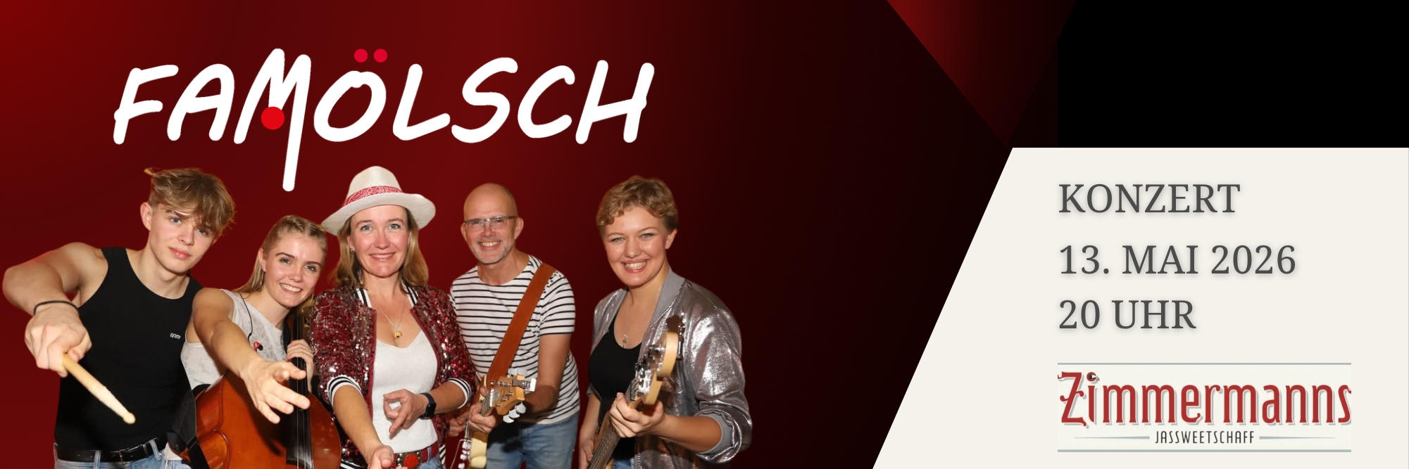 Famölsch bringt kölsche Lebensfreude direkt auf die Bühne – energiegeladen, authentisch und mitreißend – das ganze Jahr über. Als Familienband vereinen wir Generationen, Leidenschaft und echte kölsche Tradition zu einem unverwechselbaren Sound.